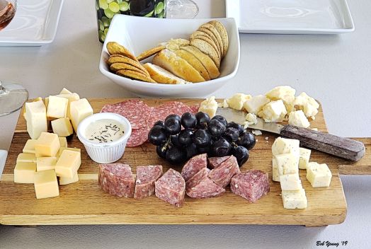 Beecher’s Aged White Cheddar, Chefs Choice Assorted Cheeses, Blue Cheese Fondue, Sliced Salami, Grapes, Crackers and Sliced Baguette