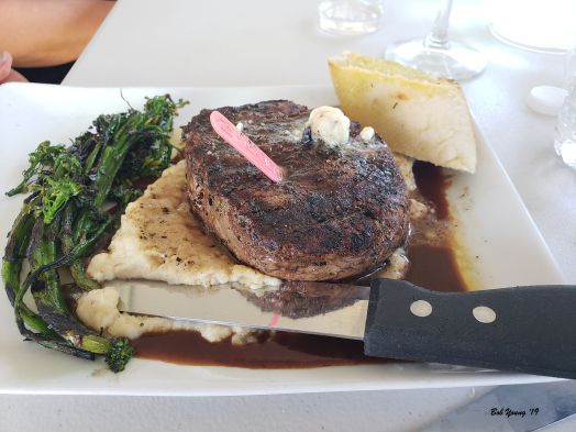 It is not often that I rave about an eating place, but the Parma Ridge Winery and Bistro is one of our favorites and definitely a 5-Star eatery. Staff is awesome and Chef Storm and Stephanie Hodge, the owners, winemakers, artist and “chief cook and bottle washers”, sorta, are so humble, courteous and kind. Kudos to you both and to your superb staff! And Thank-You for such a great venue for our 36th wedding anniversary. The food was superb and the patio seating was great. Note: The winery and bistro are a great place to go Wednesday through Sunday. Friday, Saturday and Sunday, you had best call for reservations. Contact information is at the link above. Left Click any of these photos to see them enlarged.
