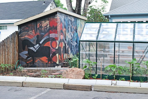 There is a Doctors office across the street and last year they installed the greenhouse. From what I understand, it was quite productive. Love the way they decorated the storage shed.