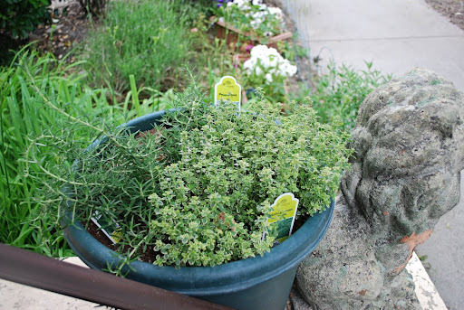 And if you don’t have the yard space. why not try “potted gardens”. This one has rosemary, mint and thyme in it.