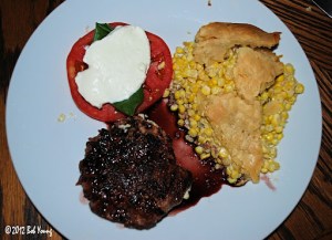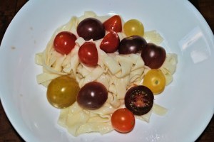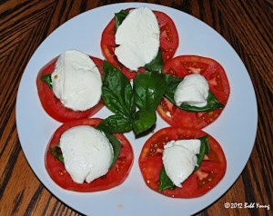 Nothing says one can not have a salad for dinner. Try this modified Caprice Salad, for example. Basically, a Caprice Salad -tomato, mozzarella cheese and lots of fresh basil. Then I added black olives and I had to use mozzarella string cheese – all I had. Then added celery and hard cooked eggs. and olive oil for a dressing. It worked. Different, but yummy!