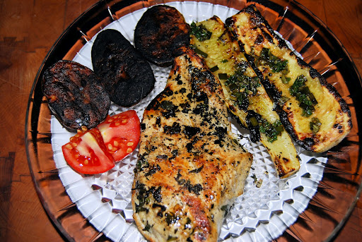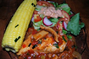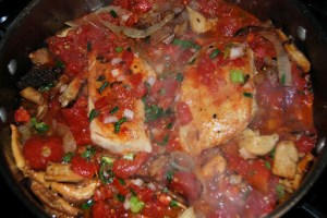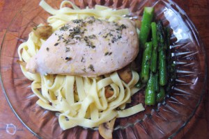 To serve: Place slices of chicken on plate with potatoes and drizzle the pan sauce over both. Serve with a good Fume Blanc wine. We served an Idaho 2009 Syringa Winery Fume Blanc. It really went quite well with the dinner.