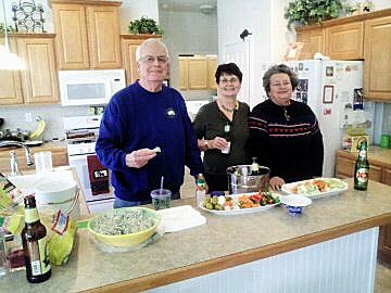 The Super Bowl Party was loads of fun and some great food! Thanks to Bob and Gail Parker who opened their home to us. Bob, Gail and Robin are pictured here. Loads of snacks, carrots, celery,special dip and beer – several types! Here is a link for our Chicken Hot Wings that we made. They were good!