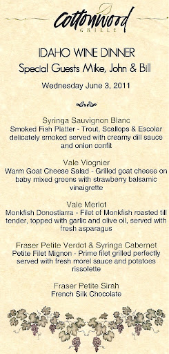 Idaho Wine Dinner, Cottonwood Grille, Boise