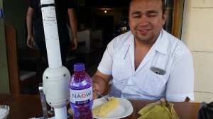Sometimes in touring through the many files and friends we have on Facebook and through many blogs, we come across some interesting recipes and foods. A dear friend of ours, Bonnie Nees from Billings, MT recently went to Quito, Ecuador to visit an exchange student she sponsored several years ago. René Zambrado is this young mans name and he is such a kind and delightful person. He graduated from Facultad de Jursiprudencia at Pontificia Universidad Católica de Ecuador in 2010 with a degree in law. Bonnie posted many photos of her trip, but one in particular “struck my fancy”. Food! And in particular, Humitas. AKA, Ecuadorian tamales. (Left-Click any of these photos to see them enlarged.)