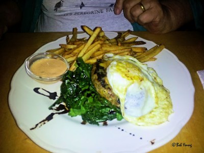 Burger Topped with Soft Fried Egg on Spinach Bed