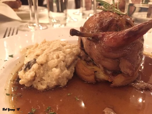 Brined, Lightly Smoked and Pan Fried with Rosemary Truffle Butter and Rosemary Truffle Mashed Potatoes accompanied by Grilled Asparagus Storm’s Homemade Grilled Bread