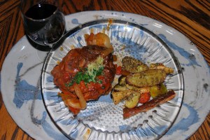 A couple of days ago, Robin asked me to see if I could get some veal bones for stock at the market. They did not have any plain bones, but they had some veal shanks. So I bought the shanks and decided that we could have some Veal Osso Buco tonight. Great choice. It was awesome. The photo to the right is the plated dinner. We found a good recipe for some oven roasted vegetables that went extremely well with the dinner. Here are the recipes and some photos. Enjoy!