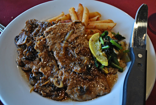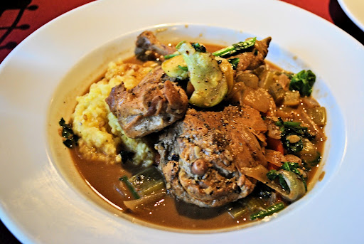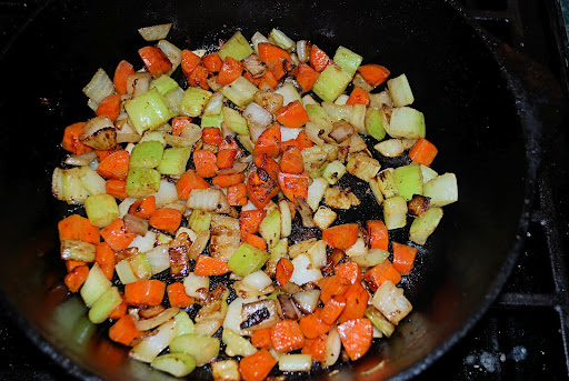 A couple of days ago, Robin asked me to see if I could get some veal bones for stock at the market. They did not have any plain bones, but they had some veal shanks. So I bought the shanks and decided that we could have some Veal Osso Buco tonight. Great choice. It was awesome. The photo to the right is the plated dinner. We found a good recipe for some oven roasted vegetables that went extremely well with the dinner. Here are the recipes and some photos. Enjoy!
