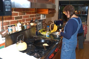 So you have some “stuff” still in the refrigerator that you don’t quite know what to do with. Don’t throw it out, unless, of course, it’s green and fuzzy. It’s not exactly Réchauffé – a dish of warmed-up leftovers, but more like Utiliser les restes – using leftovers. We have strawberries that need to be used, so we make Strawberry Waffles. And there is some Pork Belly, “… pork belly is uncured meat (while) bacon is a cured meat…(it is) the boneless cut that remains after the loin and spareribs are removed.” (pork.org) Just in case you wanted to know. So why not make an Idaho Benedict or a sautéed cabbage and apple to go with a Malheur River Meals ( https://malheurrivermeats.com ) pork chop? (Or you can get their products at the Boise Farmers Market or at Lark and Larder in Boise Good idea! So let’s take a look. Bon appetit!