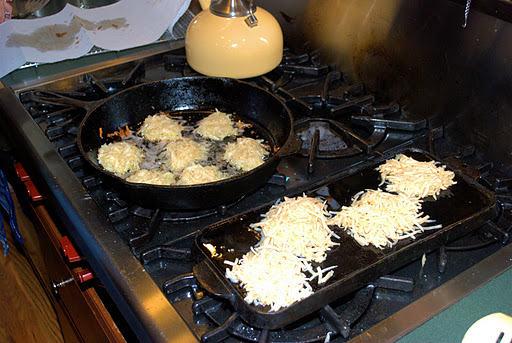 This was so differently good! If you like Eggs Benedict, try this version. Instead of a toasted English muffin, I used a potato pancake, of sorts. More like a latke than a pancake. I had the “cake” keep its shape and form by using an egg ring. Worked well. Cooking was a challenge to keep it from burning. Med high heat and used the rendered pork belly fat – some of it – to cook the potato in. Turned it over carefully when I noticed some browning on the edges. It really came out fine and was cooked all the way through. Then for serving, placed potato on plate, then one strip of thick cut pork belly broken in half, poached egg and finally Hollandaise Sauce. ( CIA Basic Hollandaise Sauce )
