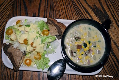 The wines that we had as “Cristie’s Choice” were a 2011 Layer Cake Chardonnay that rates an [18] and for $14.00, it was well worth it. The other one that we had was a 2010 Layer Cake Primativo. This one rated a [17] and again, for $18.00 it was well worth it. So all together we had 7 wines and a full 5 course dinner. And all of this for $15.00 per person. Such a deal!!