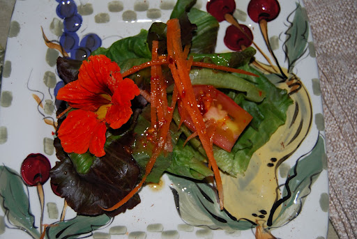 1) In a large salad bowl, toss together well the various lettuces and watercress.