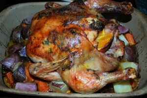 Remove from oven and using a spoon, scoop out the soft flesh, being careful to reserve enough on the sides to make the squash “bowl.”