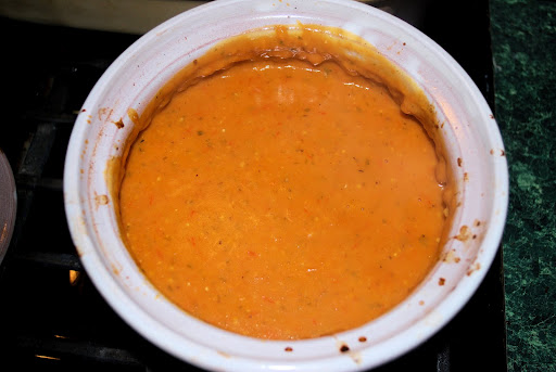4. Using a hand-held immersion blender, puree the soup. Garnish as you like and enjoy!