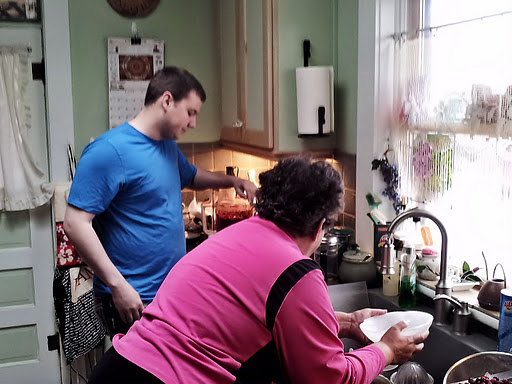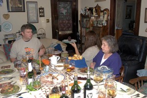 Mac, Marnie (holding the chocolate turkey) and our friend Margaret.