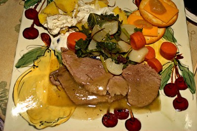 2. Slice meat into very long thin slices, on the diagonal. Cut into pieces 1 inch long. Mix with sautéed veggies. Salt and pepper to taste.