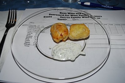 A wonderful evening at the Buzz exploring the wines of the Colchagua Valley of Chile and the Mont Gras Winery. Overall, a high scoring wine dinner and wines. There are not many times I give a wine a score of [20] out of [20], but the wine pictured to the left is one of those. A rich, deep purple cab and wonderful bouquet of spice, pepper and huge cherry. Long lasting without the “barbs” of some cabs. This was an awesome wine. Enjoy the photos and our dinner. Especially look at the Tommy’s Meatloaf below and my comments.