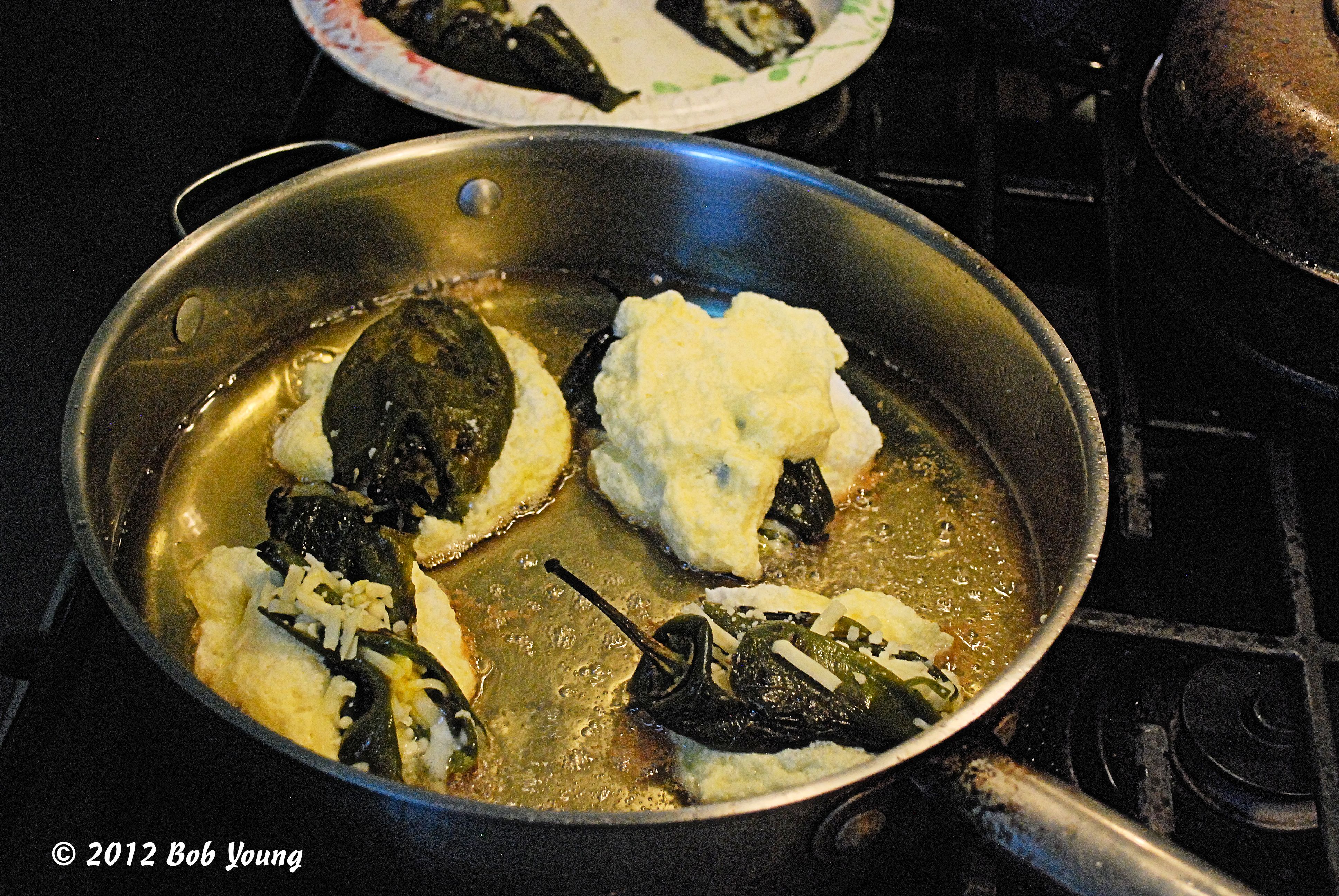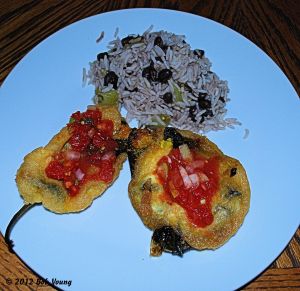 Ah yes! Chili Rellenos. Robin makes the best I have ever eaten. It must be in the soft peak egg whites. Mine were good, but not that good. Here is a link to Robin’s Chili Rellenos. Fun to make. More fun to eat! Just takes a little time. And if you want to, you can roast the peppers over charcoal to give them an interesting twist. I used the stove. The eggs and the peppers came from our local farmers market.